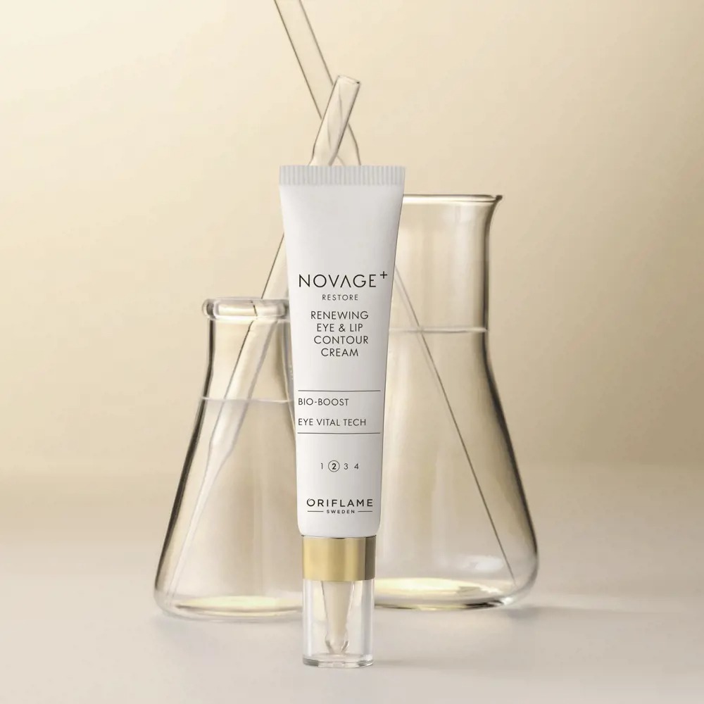 + Novage+ Restore Renewing Eye + Lip Contour Cream – multi-performance actives target eye and lip contours – smoothing wrinkles, lifting sagged eyelids, plus diminishing puffiness and the look of dark circles.