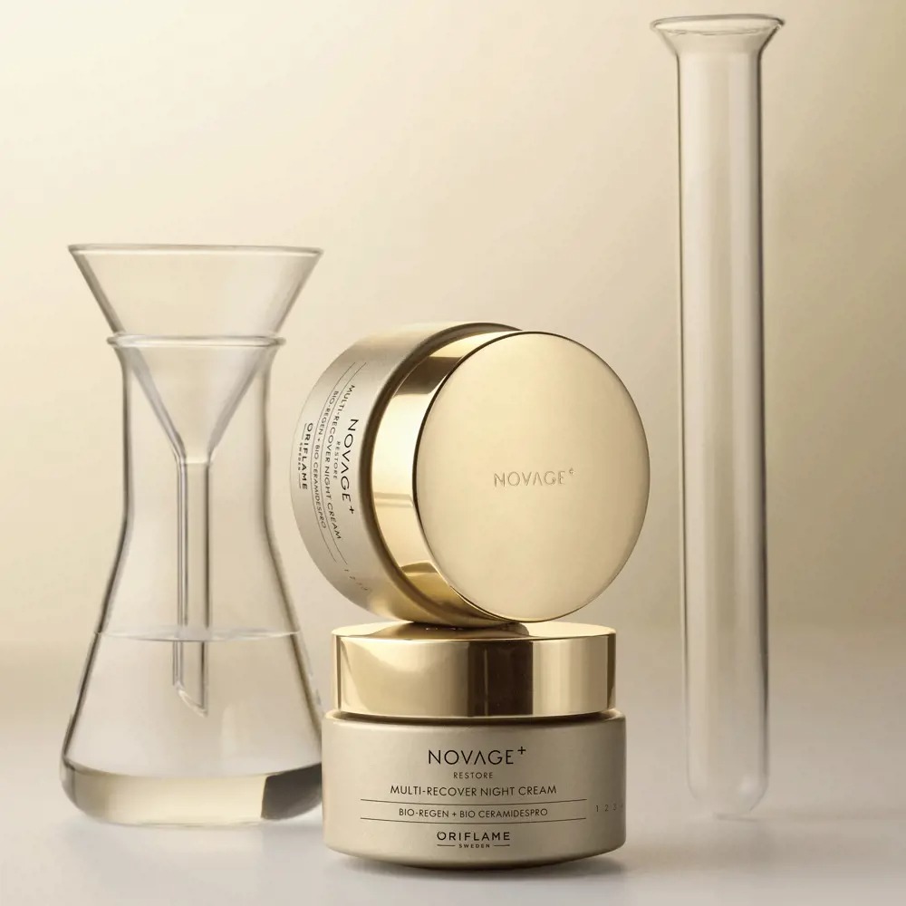 + Novage+ Restore Multi-Recover Night Cream – intensely nourishing formula comforts mature skin for recovery. Smooths and rejuvenates skin overnight, with advanced anti-ageing benefits for firmer, more defined skin in just 1 week.